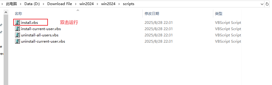 此处我安装的版本为2025.2.0.1 安装好需要的 Jetbrains 软件,关闭软件 夸克云盘下载激活包,提取码:21es 点击这里 下载好后解压缩,放在英文路径下, 打开 scripts 双击运行 install 脚本 出现弹窗点击是,无则忽略 点击确认 等待1-5分钟弹出 success,点击确认 打开下载的 win2024/Activation code,找到与你需要激活软件相同名字的文本全选复制 打开JetBrains软件,粘贴复制的激活码 激活到2099年就成功率,如果掉了过后重新重复该教程