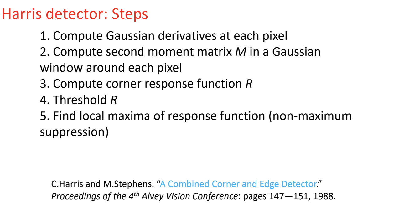 寻找角点 $ \approx $ 寻找矩阵 $ M $ 的两个特征值都很大的区域。
