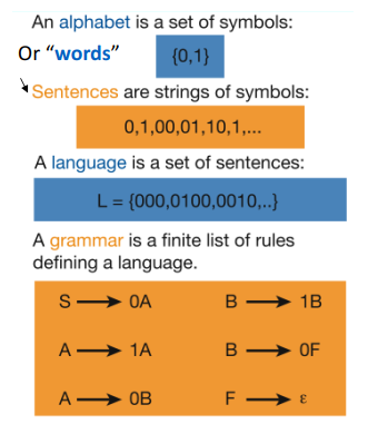 Grammars:一组规则或者说是一个枚举器,用来生成语言中合法的句子