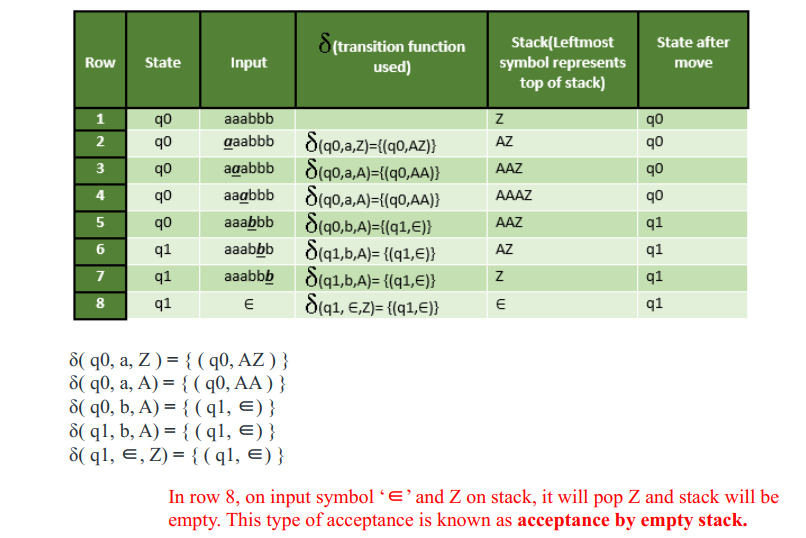- 特性: $Z_0$ 必须属于栈字母表 $\Gamma$。它的存在是为了方便判定栈是否为空。